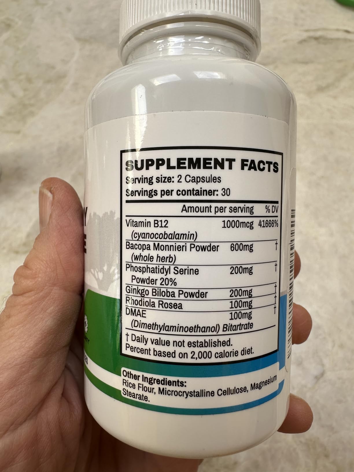 The Supporting Cast: Ginkgo Biloba enhances blood flow to the brain, Rhodiola Rosea combats mental fatigue, and DMAE supports neurotransmitter production. Each ingredient has solid research backing its cognitive benefits.