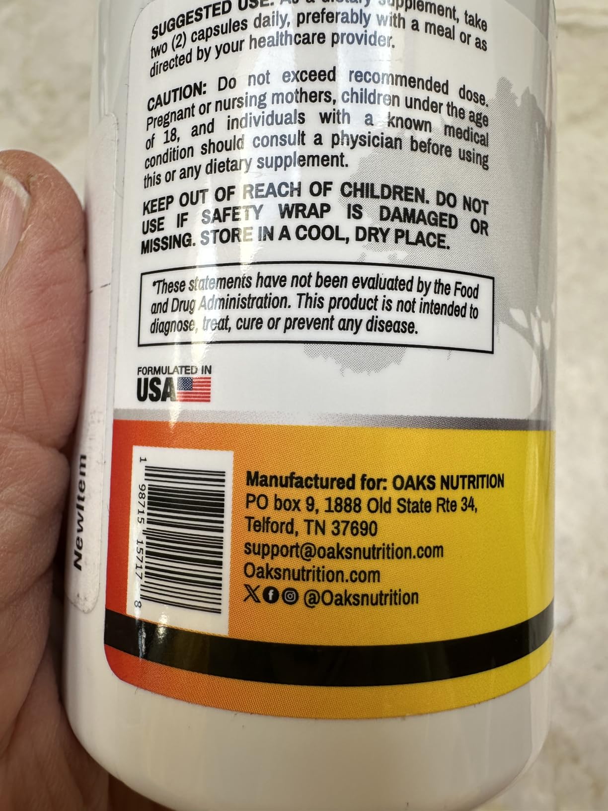 Have used each of the constituent nootropics in Oaks Nutrition Memory Muscle separately in the past, but was happy to find a competitively priced, combination multi-supplement at therapeutic levels in only two capsules per day. The sixty well & uniformly filled capsule bottle came sealed, had no powder/broken capsules, and professionally labeled. Am almost through the entire bottle and it does feel like I am deriving some benefit. I have had zero unpleasant side effects and have taken them with or without food.